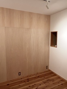 施主様のご要望でリビングから防音室内を覗けるように小窓をつけました。